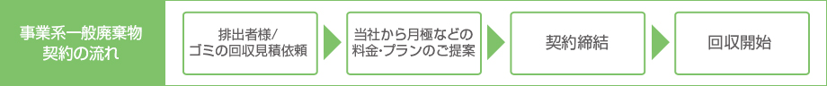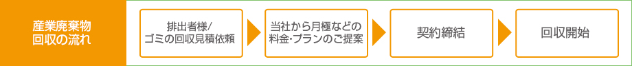 排出事業者が産業廃棄物の処理を委託するときに、マニフェストに産業廃棄物の種類、数量、運搬業者名、処分業者名などを記入し、業者から業者へ、産業廃棄物とともにマニフェストを渡しながら、処理の流れを確認するしくみです。普通産業廃棄物の基本契約と品目